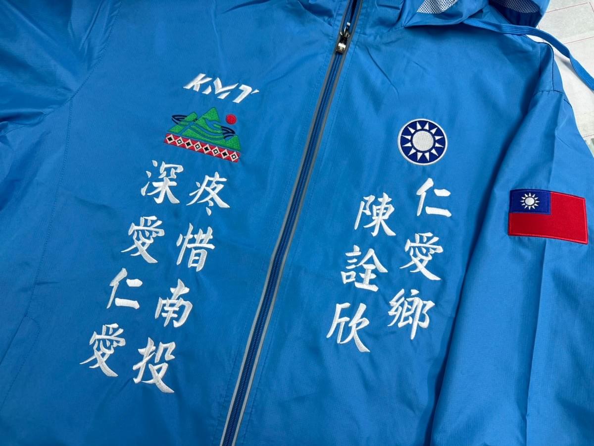 客戶提供刺繡的想法,刺繡在左胸、右胸、左臂以及後背,我們為他實現了他的想像